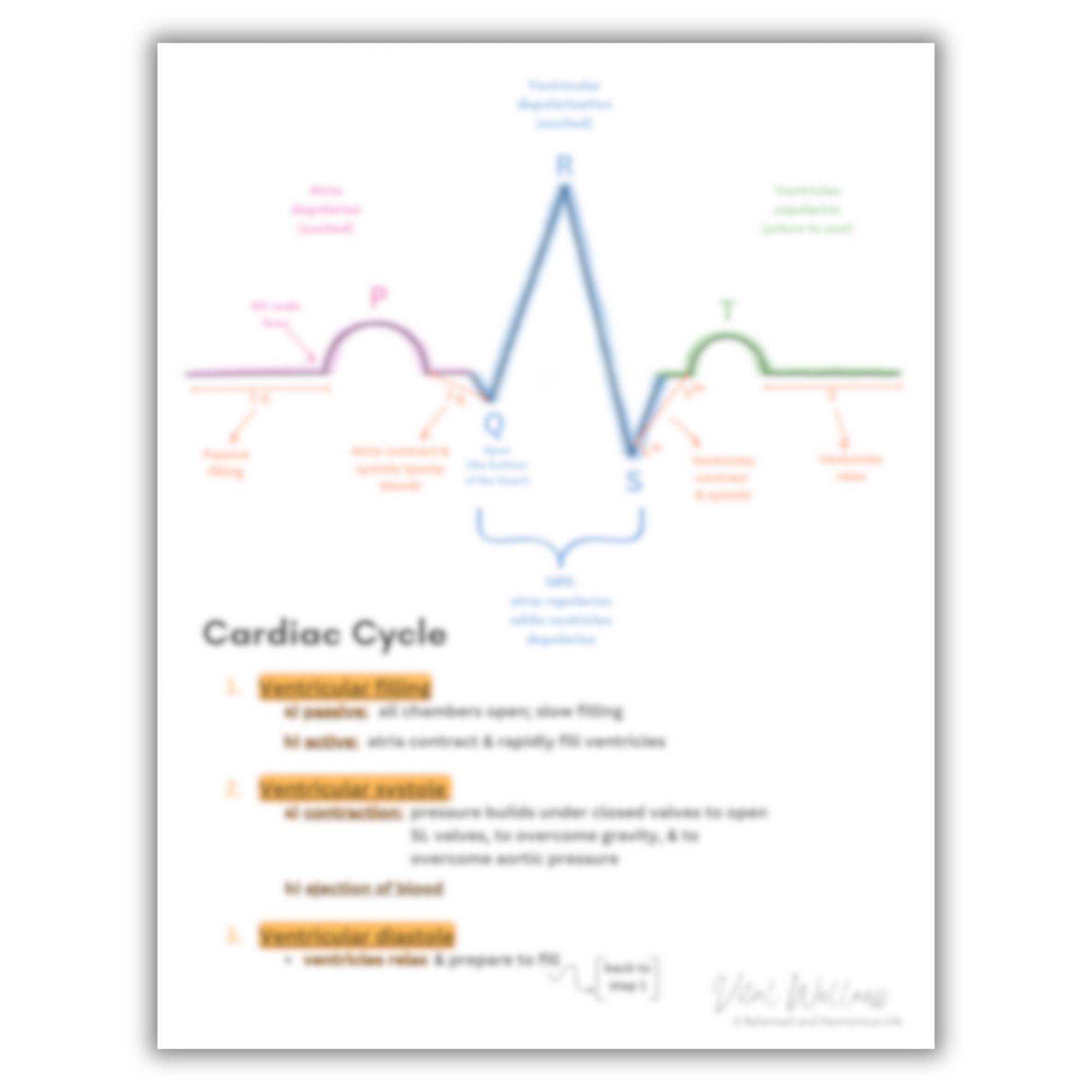 Cardiac Cycle With Pqrst Wave Etsy